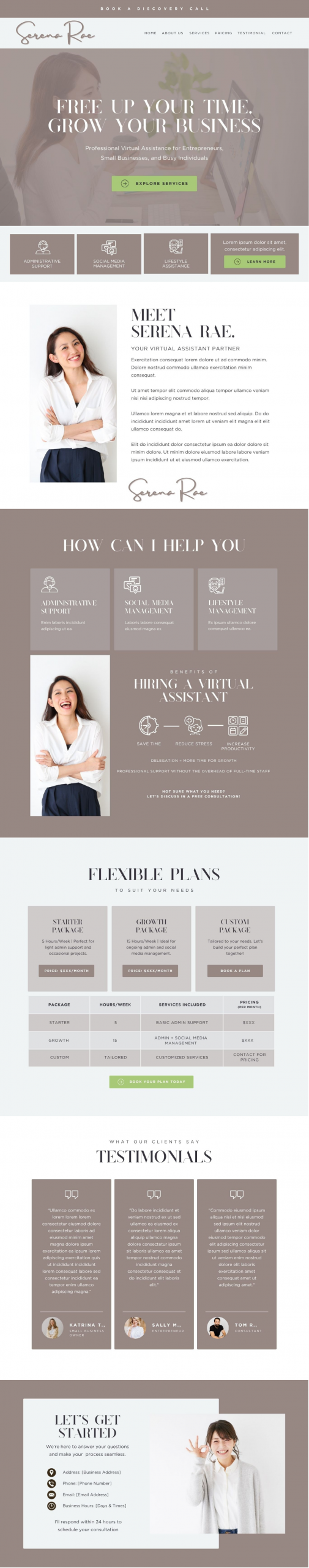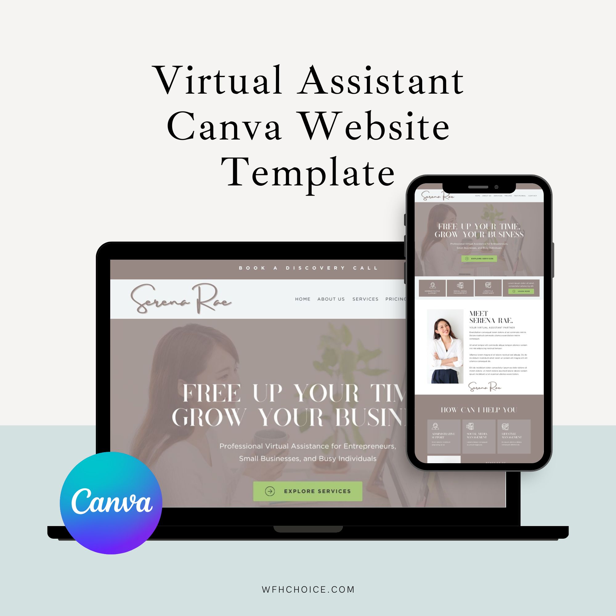 Create a professional website in no time with this fully editable Virtual Assistant Canva website template.